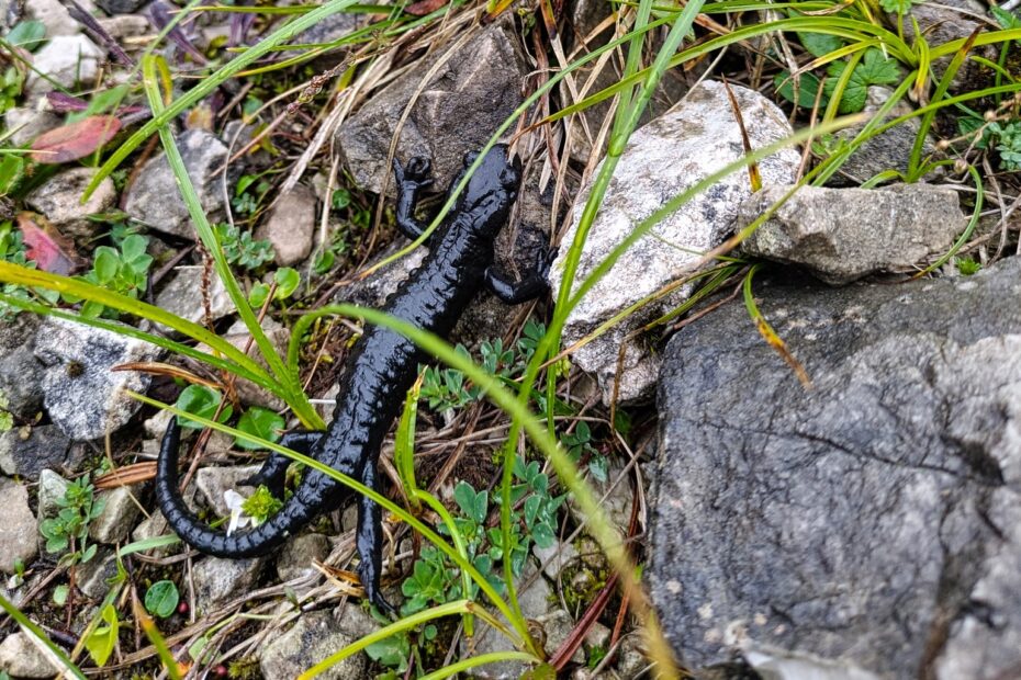 We verlaten de gemoedelijke weide rond de hut en volgen de beek stroomafwaarts. Dat is lekker wakker worden. Al gauw komen we bij een puinlawine, die we oversteken. Gisteren zaten we lange tijd hoog boven de bomen, vandaag klimmen we weer een stuk door het bos. Het traject vandaag is afwisselend, zowel qua stijgen en dalen als qua omgeving. Als het weer het toelaat, kunnen we een aantal oefeningen doen met navigeren. Vandaag slapen we niet in een berghut, maar in een authentieke alm (bergboerderij).