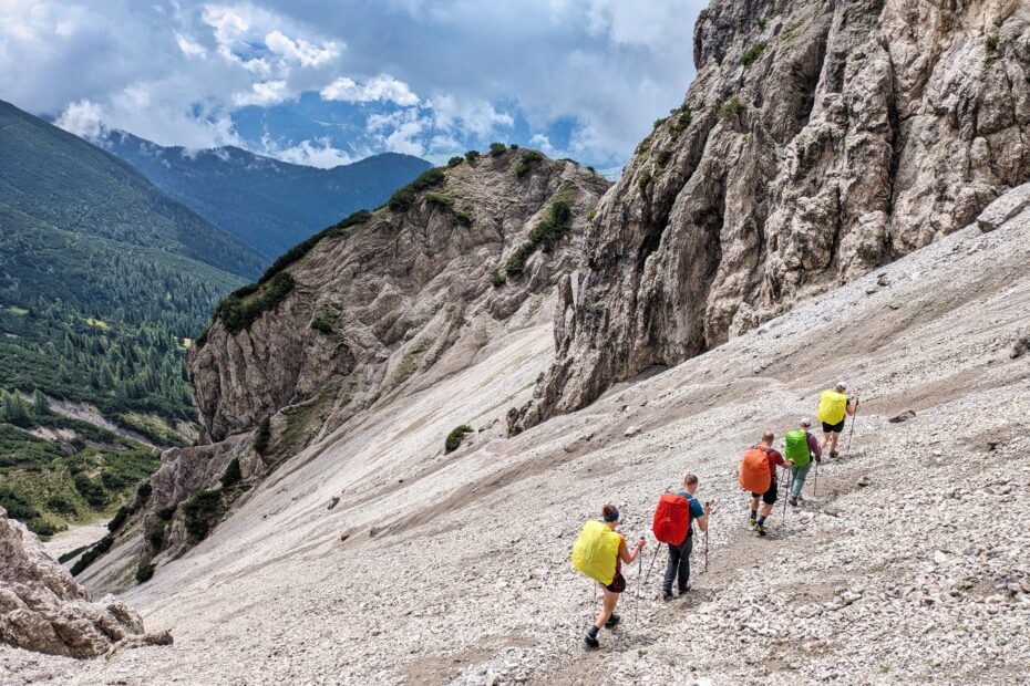 Vandaag laten we de uitzichten op het Inntal achter ons, en zetten we onze tocht voort aan ‘de wilde kant’ van de bergkam. Onze hut van vannacht staat op de graat, dus we beginnen vandaag met een stuk dalen. Het pad is steil en ligt vol losse stenen, oppassen dus. Af en toe moeten we ons vasthouden aan staalkabels. De kans is groot dat we vandaag gemzen gaan zien, die komen namelijk veel voor in het Karwendel. Na het bedwingen van de Eppzirler Scharte zien we onze volgende hut liggen. We komen hier rond de middag aan. Na de lunch kunnen degenen die nog willen de Erlspitze (2400m) beklimmen.