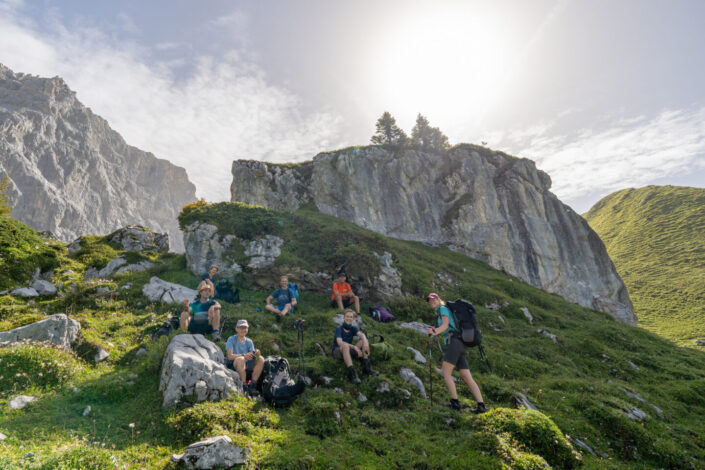 Na een korte aanloop staan we voor het langgerekte massief waar we een enkele keer overheen gaan maar grotendeels op zuidelijke hellingen hoogte balkons volgen. Dit geeft veel zon en uitzichten om van te dromen. Dagen volgen we dit massief en het verveelt nooit. Je groep bestaat uit maximaal 8 deelnemers en de tocht is zo ontworpen dat er kan worden ingesprongen op individuele wensen. Een kampeertrektocht voor minder ervaren of niet ervaren avonturiers. Een paar hutten geven ons de kans om een extraatje te nemen. Dit gebied is ideaal om op hoogte de tenten op te zetten. We worden omringd door oprijzende kale bergmuren, weidse almen en diep onder ons naaldbossen. Boven de boomgrens kunnen we gemzen, marmotten en soms een steenbok ontmoeten. Het gevoel alleen op de wereld te zijn is groot.